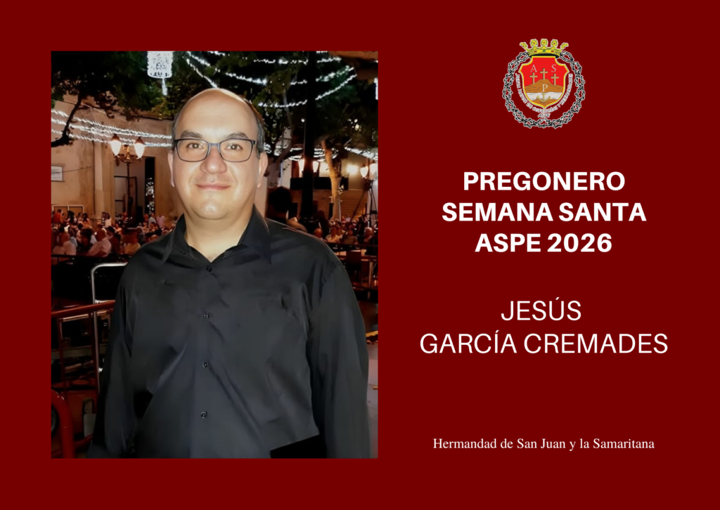 D. Jesús García Cremades, pronunciará el XXIX pregón de la Semana Santa de Aspe, que organiza la Junta Mayor de Cofradías y Hermandades de la Semana Santa. Será el próximo 21 de marzo de 2026, sábado, día en el que se da inicio en la Basílica al Septenario de los Dolores. El pregón de Semana […]